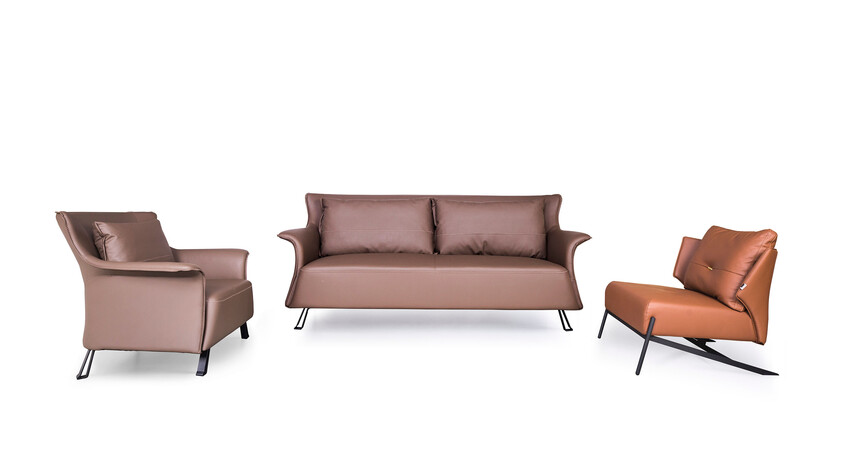 1.面料:采用优质进口保时捷纳西皮+麻绒布。2.结构:进口实木框架。3.弹簧: 优质碳素钢蛇形弹簧。4.填充物:座垫45°高回弹海绵 ,靠包采用科技羽绒加纳米回弹颗粒填充。靠背/扶手:35°海绵软硬适中。5.脚架:加厚钢板电脑切割,冷轧一次成型,表面黑色喷砂防锈防氧化处理.