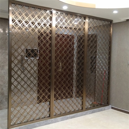 拉丝亚光香槟金抗指纹不锈钢花格屏风隔断厂家