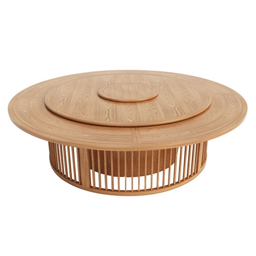 。这款酒店包房新中式风格禅意实木电动餐桌非常高端大气,转盘面设计为两层,转盘的颜色与围板的颜色都设计为一体色彩,让电动餐桌上下更加呼应,还有电动餐桌底座设计采用很前卫的竖行格栅实木装饰,摆放在会所包房内熠熠生辉,非常大气端庄。