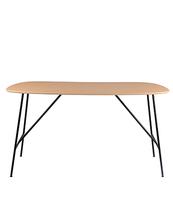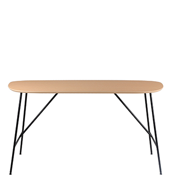 在画布上再现自己眼中的这个客观世界,不愿被束缚的绘画艺术给了设计师启发,从世间万物中汲取灵感,结合森川的见解,实现视觉与空间的双重满足。 自带艺术气息,不会过于喧嚣,也不至于过于内敛。 Bud的桌面线条柔美,形似豌豆,恰到好处的弧形环抱曲线,贴合人体线条,为使用者的身体延展提供空间,圆润的线条边角处理,配合细腻的木质纹理,营造和谐自洽的氛围,让功能兼顾美感。 Bud的桌腿仿佛是豆类生长出来的芽,设计的妙处在于提供承重的居然是几根的孱弱线条,设计师在H 形桌腿上增添双三角支撑,呈现力量与结构之美,精密连接让轻巧的线条感铁质结构也能提供稳固支持,水珠般脚垫加大受力面,整体看来更加干练,仿佛生长中的豌豆在不断积蓄中拥有破土的力量。